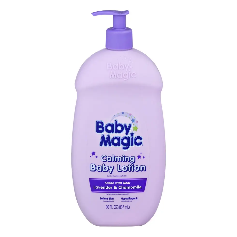 Baby Magic Calming Lotion is a 30 oz bottle that softens the skin with lavender and chamomile. It is vitamin-enhanced and naturally skin-loving, helping to calm the senses and provide all-day moisture for your baby's delicate skin