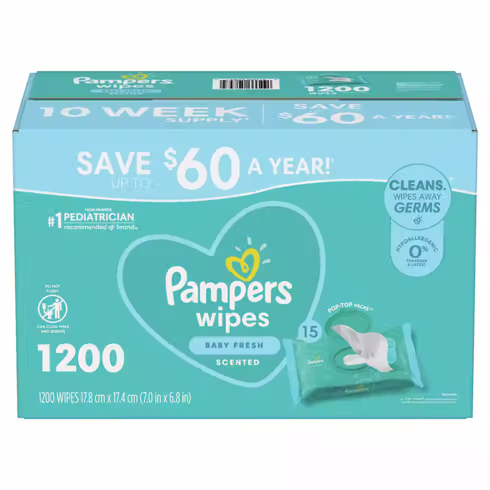 Pampers Complete Clean Baby Fresh scented wipes are 4X stronger vs. the leading US sub-brand for a durable, yet gentle clean. A soft touch makes these versatile wipes tough enough to tackle messy hands and diaper changes, yet gentle enough to care for your baby's precious, delicate skin. Don’t fear the baby mess again!
