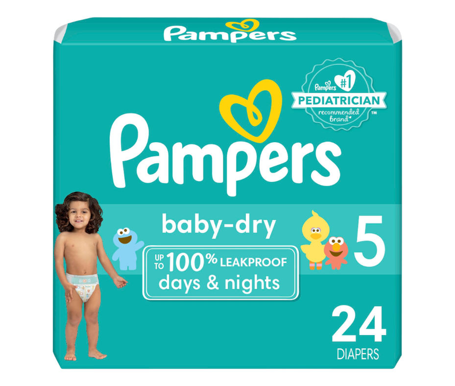 Pampers Baby-Dry Diapers features 3 layers of absorbency to pull liquid away for up to 12 hours and has an all-around stretchy side for a secure, comfortable fit.